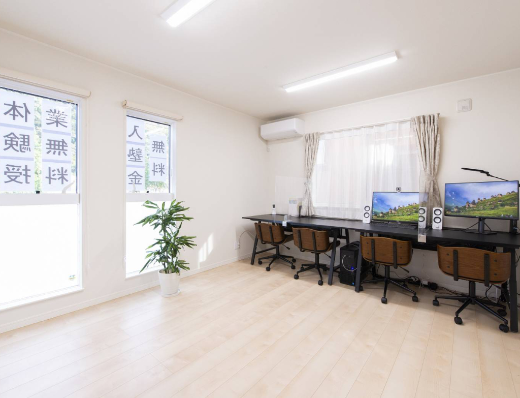 授業形態は対面・オンラインをご用意しております。教室は各務原と犬山の市境にあり、JR鵜沼駅から徒歩8分。自習室利用も可能です。