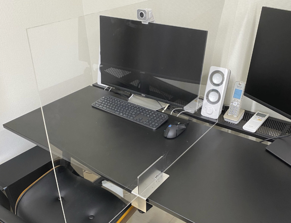 鵜沼教室では、パーテーションの設置、常時換気を基本として、大画面モニターを駆使した授業で、相互距離の確保、入室前の体温測定+消毒指導をきっちりと行っています。